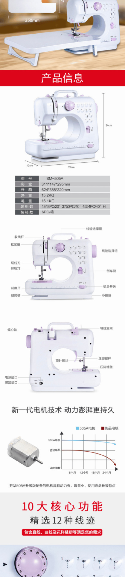 505A sewing machine, household electric desktop handheld fully automatic sewing machine, hemlock locomotive